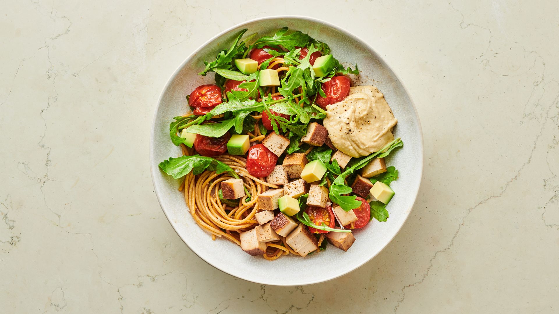 - Du kannst die Basis des Gerichts (Tofu-Cherrytomaten-Pasta) vervielfachen und für viele kreative Kombinationen verwenden. Ganz im Sinne des “Meal-Prep”.